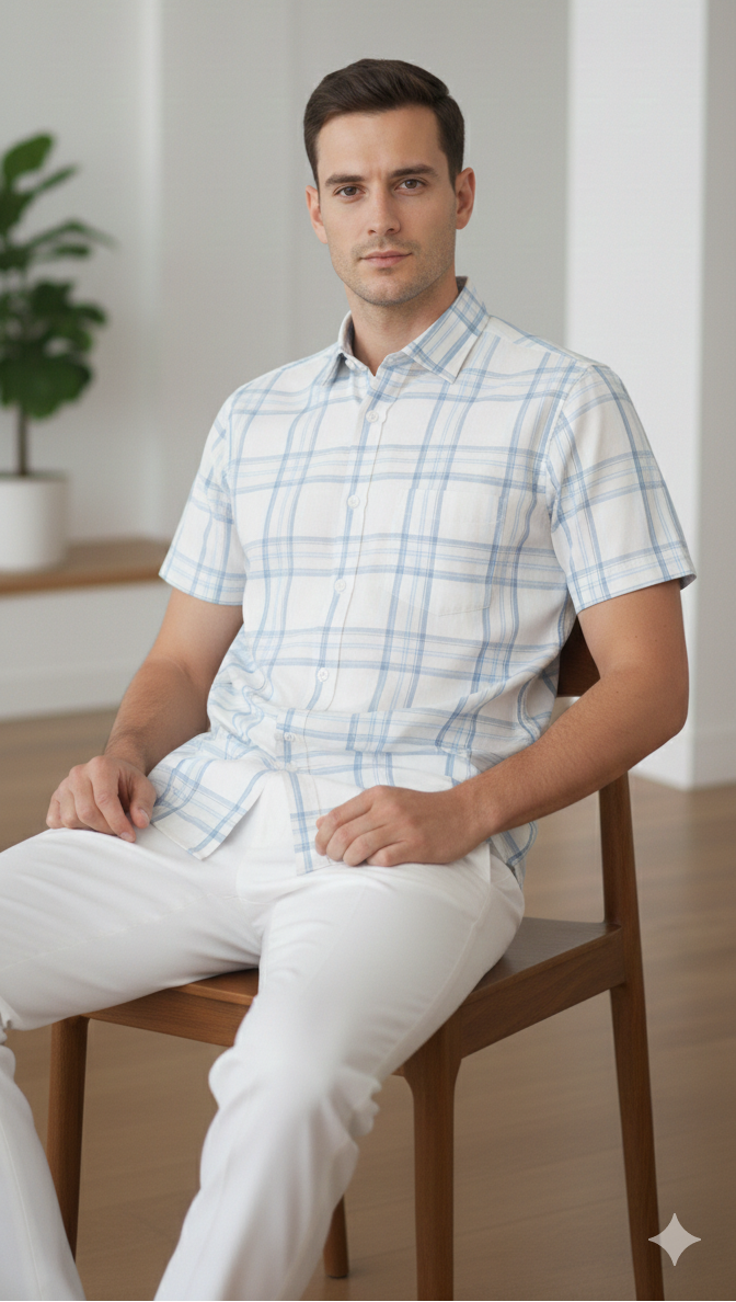 Men 100% Cotton Half Sleeve Shirt (Checkered)