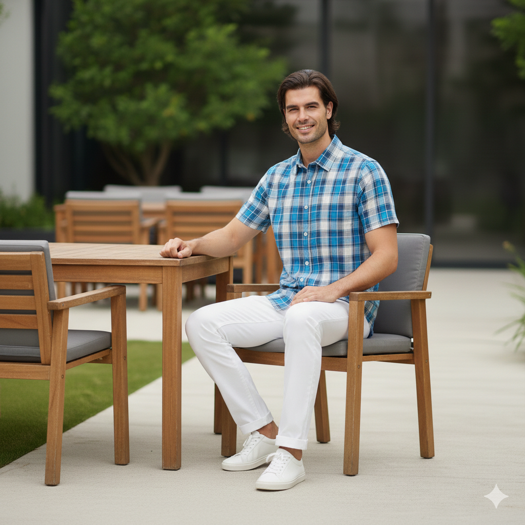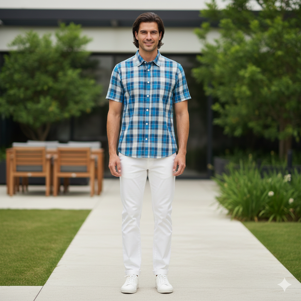 This men's checkered shirt features a stylish plaid pattern in blue, grey, and white hues to add a classic touch to your wardrobe. Made from soft, lightweight cotton fabric, it offers all-day comfort and a versatile look that's perfect for casual outings, weekend wear, or layering over a tee.